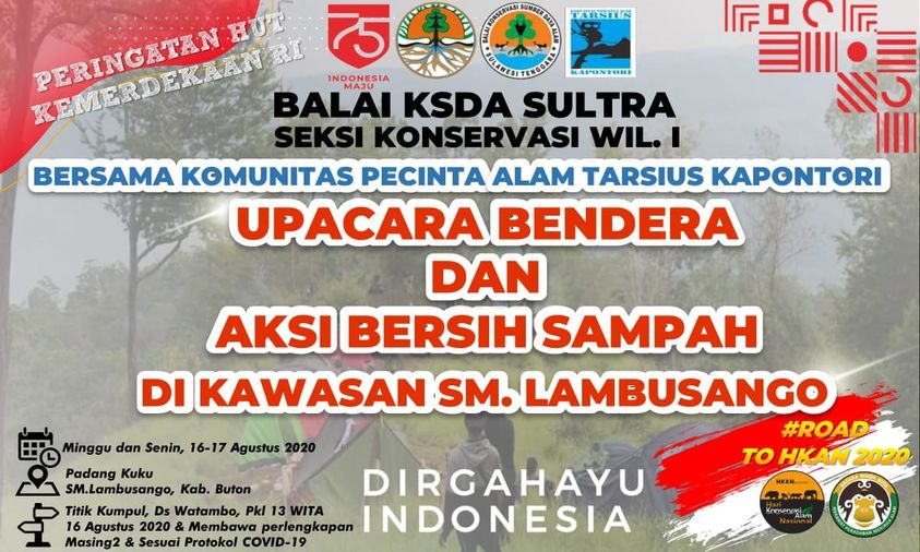 BKSDA SKW 1 SULTRA bekerjasama dengan KPA Tarsius Kapontori & Yayasan Tarsius Celebes Indonesia menyelenggarakan kegiatan Upacara Bendera memperingati Hari Kemerdekaan Republik Indonesia yang ke 75 pada 17 Agustus 2020. Pelaksanaan upacara ini cukup unik karena dilakukan di puncak Bukit Padang Kuku, Desa Lambusango Timur, Kecamata kapontori, Kabupaten Buton. Pada malam sebelum pelaksanaan upacara, para peserta telah berada di Bukit Padang Kuku untuk melakukan camping bersama.